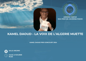 📚 Sot, mĂ« 16 dhjetor 2025, Prof. Dr. Saverina Pasho zhvilloi njĂ« leksion tĂ« hapur me studentĂ«t e gjuhĂ«s franceze tĂ« FGJH – UT me temĂ«: “Kamel Daoud – zĂ«ri i AlgjerisĂ« sĂ« heshtur”.