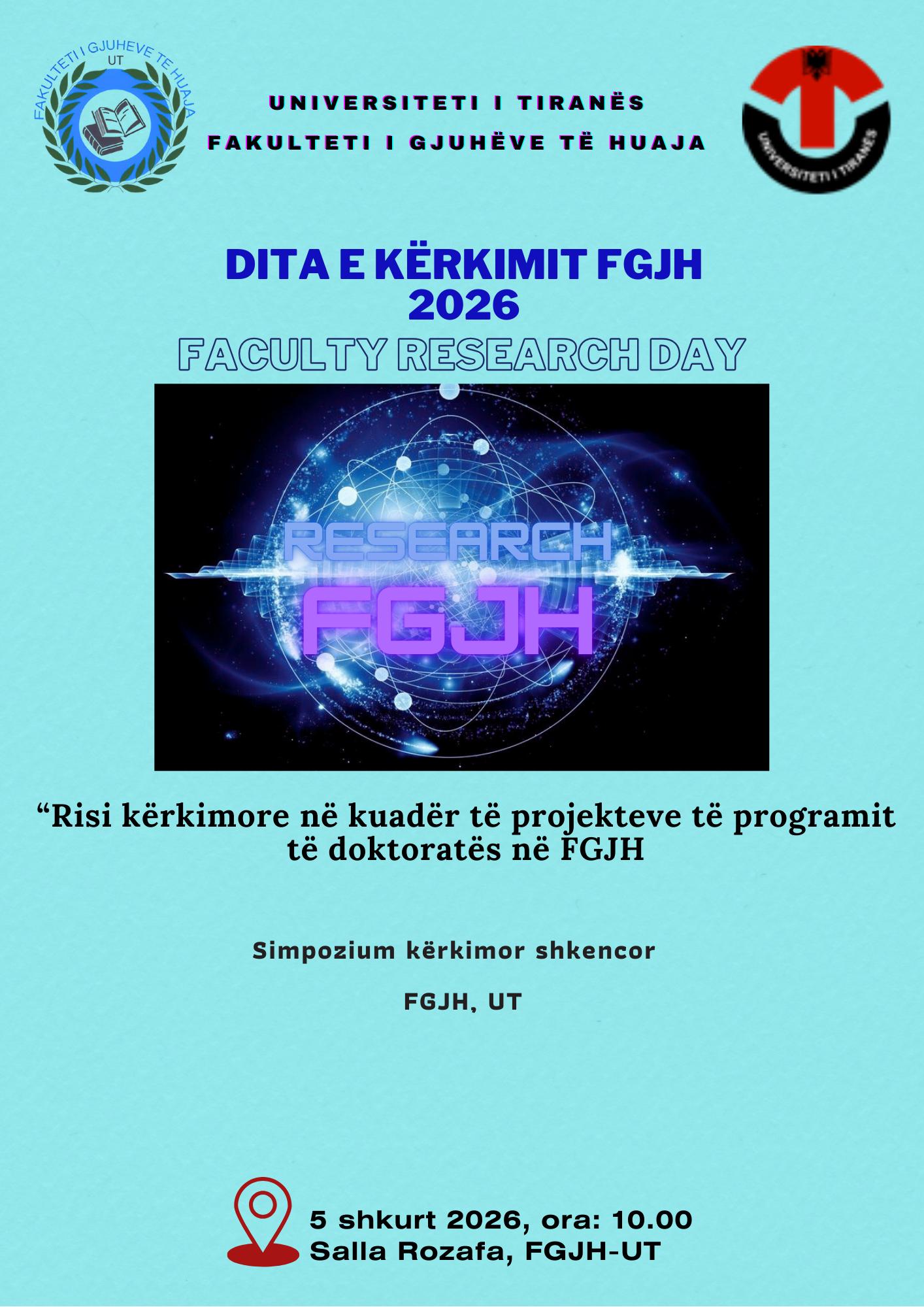 Më 5 shkurt 2026, në Fakultetin e Gjuhëve të Huaja të Universitetit të Tiranës, u organizua edicioni i tretë i simpoziumit shkencor “Dita e Kërkimit në FGJH”, me temë: “Risi kërkimore në kuadër të projekteve të programit të Doktoraturës në FGJH” Ky aktivitet nuk ishte thjesht një hapësirë prezantimi, por një moment i rëndësishëm reflektimi...