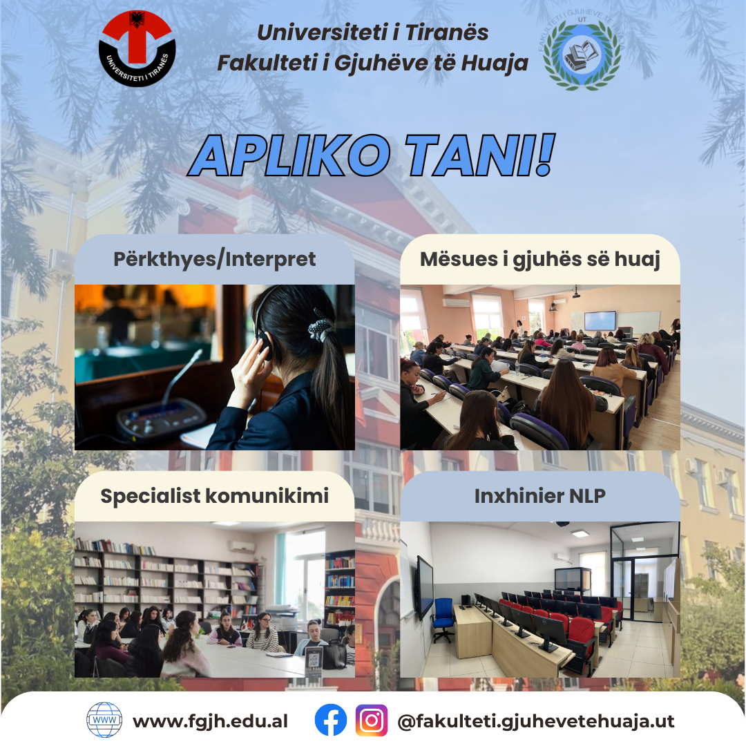 #Matura2026 🚨 📢 Sot përfundon aplikimi për formularin A1. Fakulteti i Gjuhëve të Huaja, UT, fton maturantët që ende nuk kanë aplikuar të kryejnë aplikimin brenda afatit zyrtar. 🎓 Mos e humbisni mundësinë për të nisur studimet universitare në FGJH-UT.