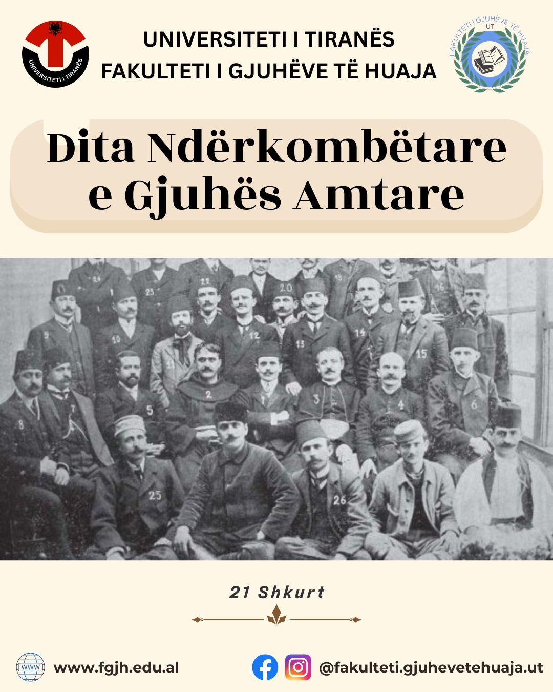 Sot festojmë pasurinë që na bashkon dhe na dallon njëkohësisht: gjuhën amtare. Ajo është kujtesa jonë, identiteti ynë dhe ura që lidh brezat. Në Fakultetin e Gjuhëve të Huaja, UT, promovojmë çdo ditë bukurinë e shumëgjuhësisë, respektin për diversitetin gjuhësor dhe rëndësinë e ruajtjes së gjuhëve si ura komunikimi mes njerëzve dhe kulturave. ✨ Le...