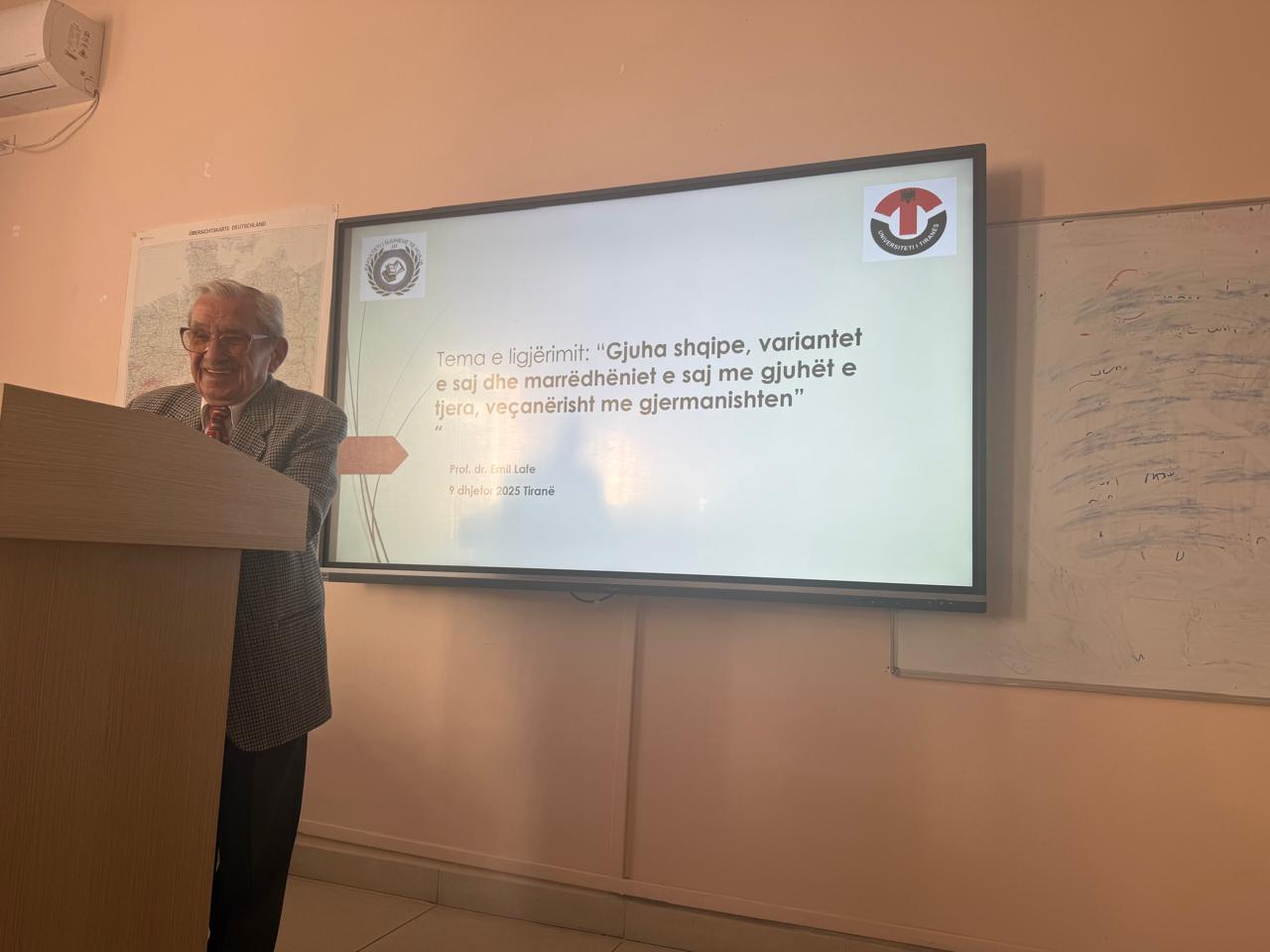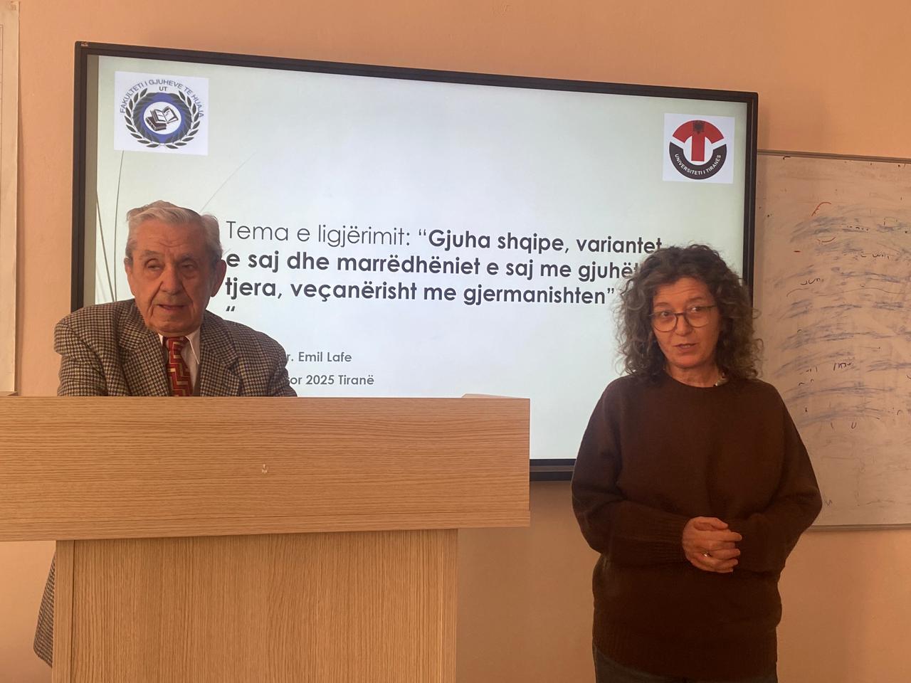 Në këtë kontekst, grupi mësimor-lëndor “Gjuhësi dhe Komunikim” Gjuha Gjermane”, organizoi veprimtarinë shkencore me Prof. dr. Emil Lafen, një prej gjuhëtarëve me një ndihmesë të rëndësishme në fushën e Albanologjisë, normës gjuhësore dhe studimeve krahasuese, i cili ka dhënë lëndën “Albanologjia në gjuhën gjermane / Deutschsprachige Albanologie” në degën e gjermanishtes në vitet 2009–2018.