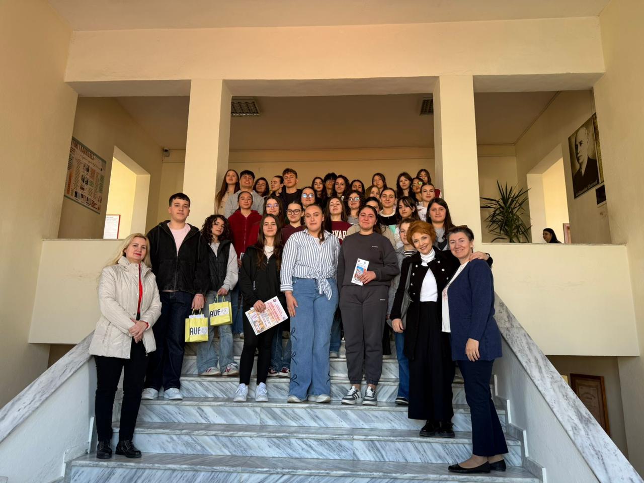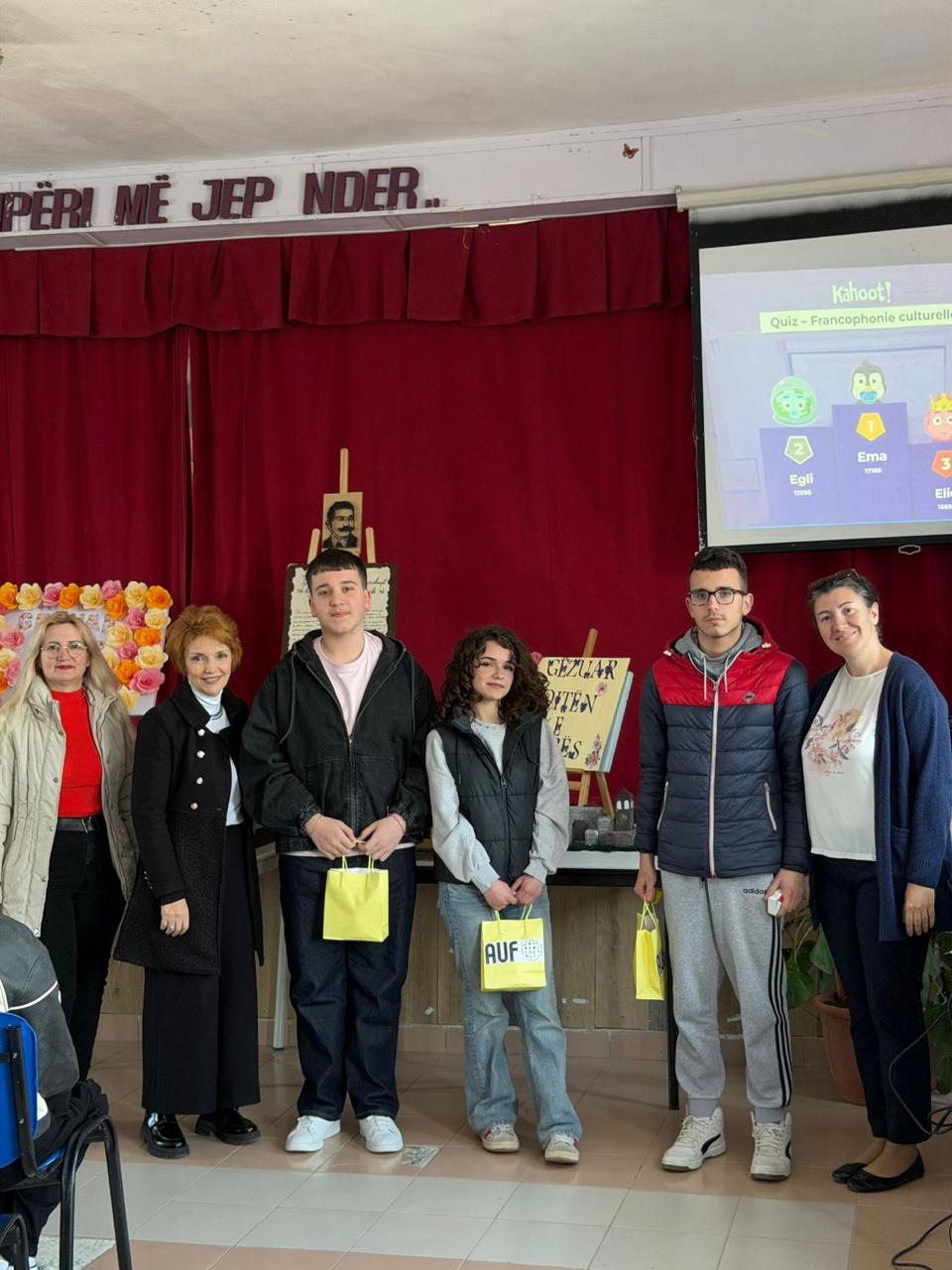 “Në kuadër të “Pranverës së Frankofonisë” në Shqipëri, Departamenti i Gjuhës Frënge në Fakultetin e Gjuhëve të Huaja në bashkëpunim me zyrën e AUF në Tiranë, organizoi aktivitete interaktive në disa shkolla të mesme, si “Luigj Gurakuqi” në Elbasan, “Besnik Sykja” në Tiranë, “Gjergj Kastrioti” në Durrës dhe “Sadik Stavileci”. Nxënësit morën pjesë me shumë entuziazëm në konkursin mbi kulturën frankofone, duke zbuluar në mënyrë argëtuese pasurinë dhe larminë e saj. Krahas këtyre, u zhvilluan edhe aktivitete krijuese, si ekspozita pikture dhe një konkurs mbi inteligjencën artificiale. Këto nisma krijuan një atmosferë frymëzuese dhe bashkëpunuese, duke nxitur interesin për gjuhën dhe kulturën frankofone, si dhe duke vlerësuar përkushtimin e nxënësve, mësuesve dhe drejtuesve të shkollave në promovimin e saj. “