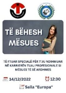 “Të bëhesh mësues”, kjo ishte tematika e diskutimit të ditës së sotme në auditorin Evropa, i cili mblodhi së bashku kolegë e studentë të vitit të tretë, të vitit të dytë Master në Mësuesi.