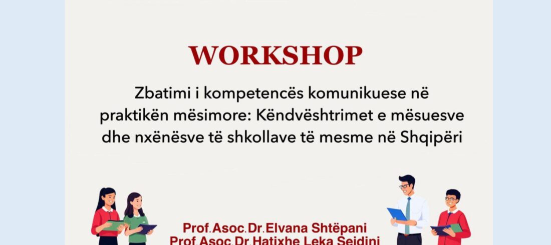 Më datë 21 Nëntor 2025 do të zhvillohet workshop-i me temë: “Zbatimi i kompetencës komunikuese në praktikën mësimore: Këndvështrimet e mësuesve dhe nxënësve të shkollave të mesme në Shqipëri”. Në ketë workshop do të prezantohen rezultatet e një hulumtimi të realizuar në terren mbi zbatimin...