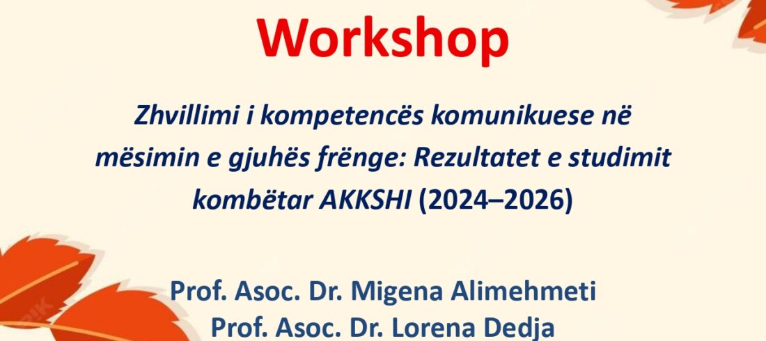 Departamenti i Gjuhës Frënge, organizon më 21 nëntor 2025, në Sallën 112, workshop-in me temë “Zhvillimi i kompetencës komunikuese në mësimin e gjuhës frënge: Rezultatet e studimit kombëtar AKKSHI (2024–2026)”. Ky aktivitet paraqet gjetjet kryesore të studimit të parë gjithëpërfshirës në nivel kombëtar mbi ndikimin...Lexo më shumë