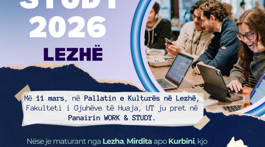 Më 11 mars, në Pallatin e Kulturës në Lezhë, Fakulteti i Gjuhëve të Huaja, UT ju pret në Panairin WORK & STUDY. Nëse je maturant nga Lezha, Mirdita apo Kurbini, kjo është mundësia jote për t’u njohur me: ✔️ Programet e studimit në gjuhë të huaja ✔️ Mundësitë e punësimit ✔️ Mobilitetet dhe bashkëpunimet ndërkombëtare E ardhmja jote fillon me një zgjedhje të informuar. Shihemi më 11 mars! 🎓Lexo më shumë