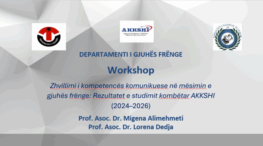 Më datë 21 Nëntor 2025 u zhvillua workshop-i me temë “Zbatimi i kompetencës komunikuese në praktikën mësimore: Këndvështrimet e mësuesve dhe nxënësve të shkollave të mesme në Shqipëri”, aktivitet i organizuar në kuadër të projektit të AKKSHI-t “Ndikimi i kurrikulës Mësimdhënie me bazë kompetencash në zhvillimin e kompetencës komunikuese e të shprehurit tek nxënësit e gjuhës së huaj në arsimin e mesëm të lartë shqiptar”. Workshop-i u drejtua nga Prof....Lexo më shumë