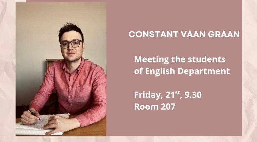 Më 21 nëntor 2025, në orën 09:30, në sallën 207 do të zhvillohet takimi me shkrimtarin dhe muzikantin Constant Van Graan. Studentët e gjuhës angleze kanë pasur mundësi të njihen më parë me krijimtarinë e tij letrare dhe muzikore, ndaj ky takim do t’u japë atyre rastin të diskutojnë drejtpërdrejt me autorin për procesin e tij krijues, temat që trajton dhe qasjen e tij artistike në përgjithësi. Ky është një...Lexo më shumë