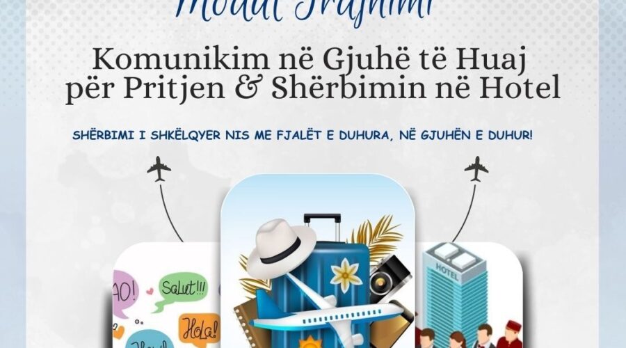 Modul i ri Trajnimi: ”Komunikim në Gjuhë të Huaj për Pritjen dhe Shërbimin në Hotel” Punoni në hoteleri dhe dëshironi të përmirësoni komunikimin me turistët e huaj? Ky trajnim praktik është zgjidhja ideale për ju! Çfarë do të fitoni: Përdorim të frazave kyçe dhe fjalorit profesional në gjuhë të huaja; Aftësi për të krijuar përvoja mikpritjeje cilësore, pa barriera gjuhësore; Profesionalizëm në menaxhimin e kërkesave dhe situatave të ndryshme; Rritje...Lexo më shumë