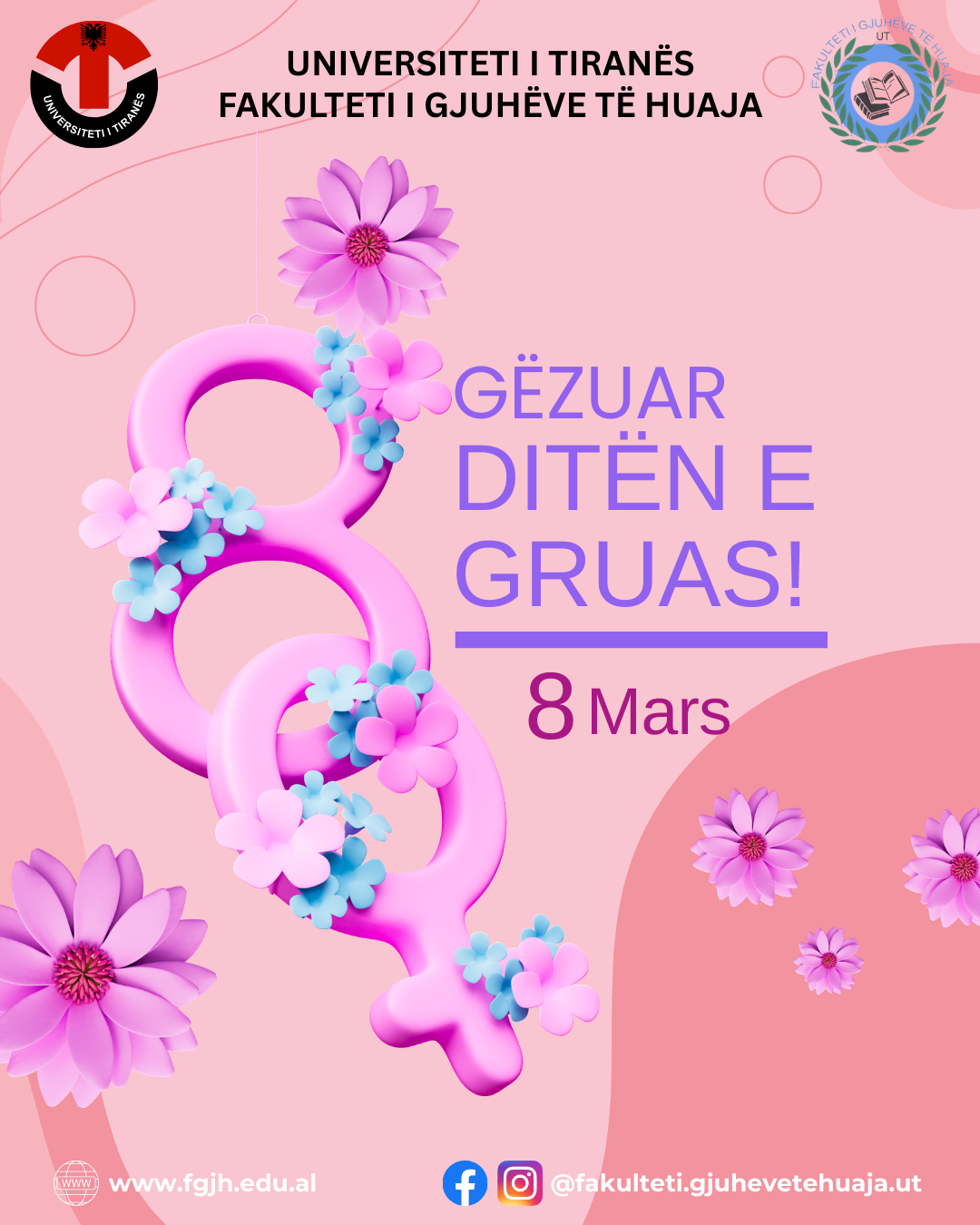 Me rastin e 8 Marsit, Fakulteti i Gjuhëve të Huaja, UT, shpreh urimet më të përzemërta për të gjitha gratë dhe vajzat. Kjo ditë është një moment i veçantë për të vlerësuar kontributin e jashtëzakonshëm të grave në arsim, në zhvillimin e shoqërisë dhe në ndërtimin e një të ardhmeje më të mirë. Fakulteti i...