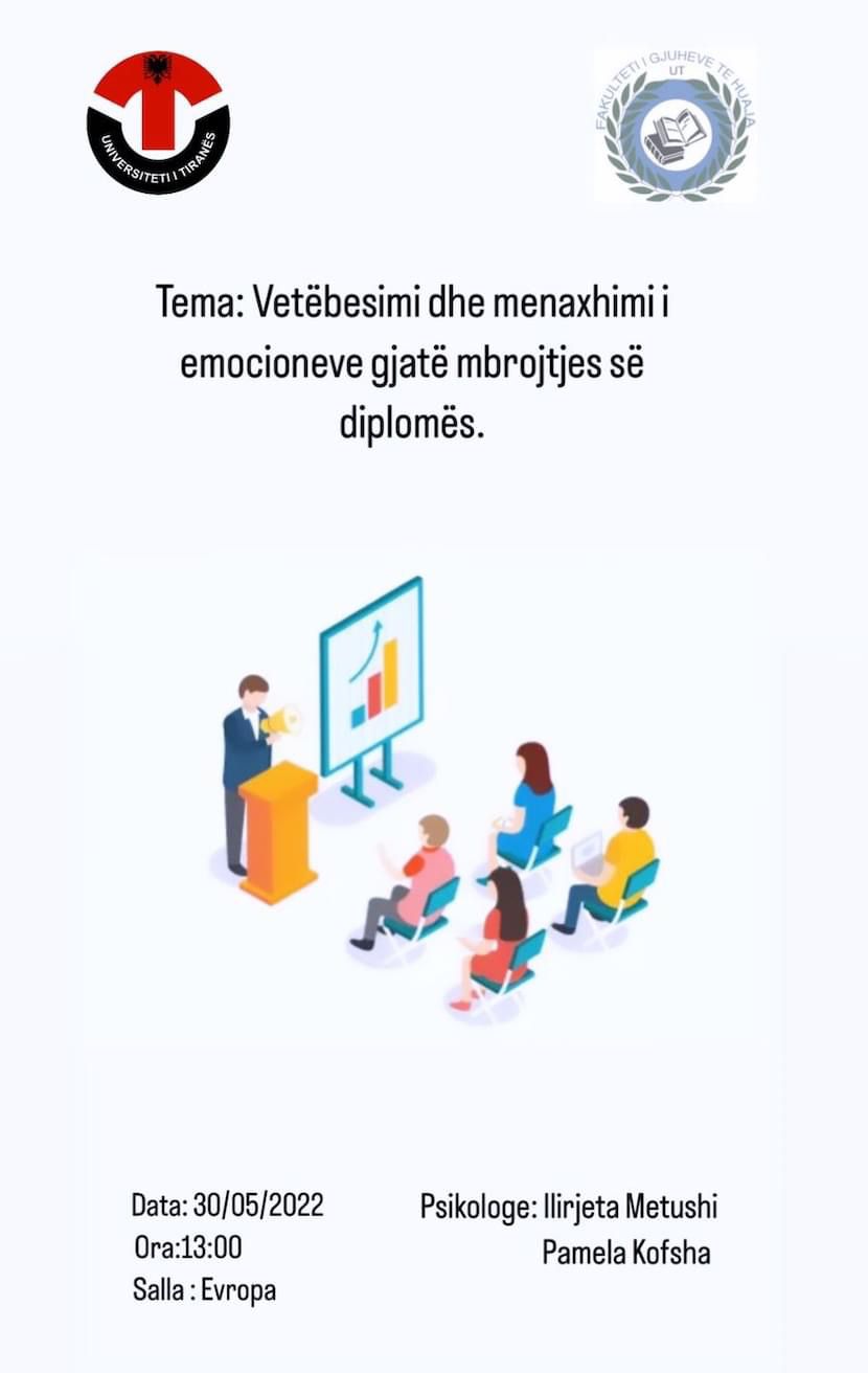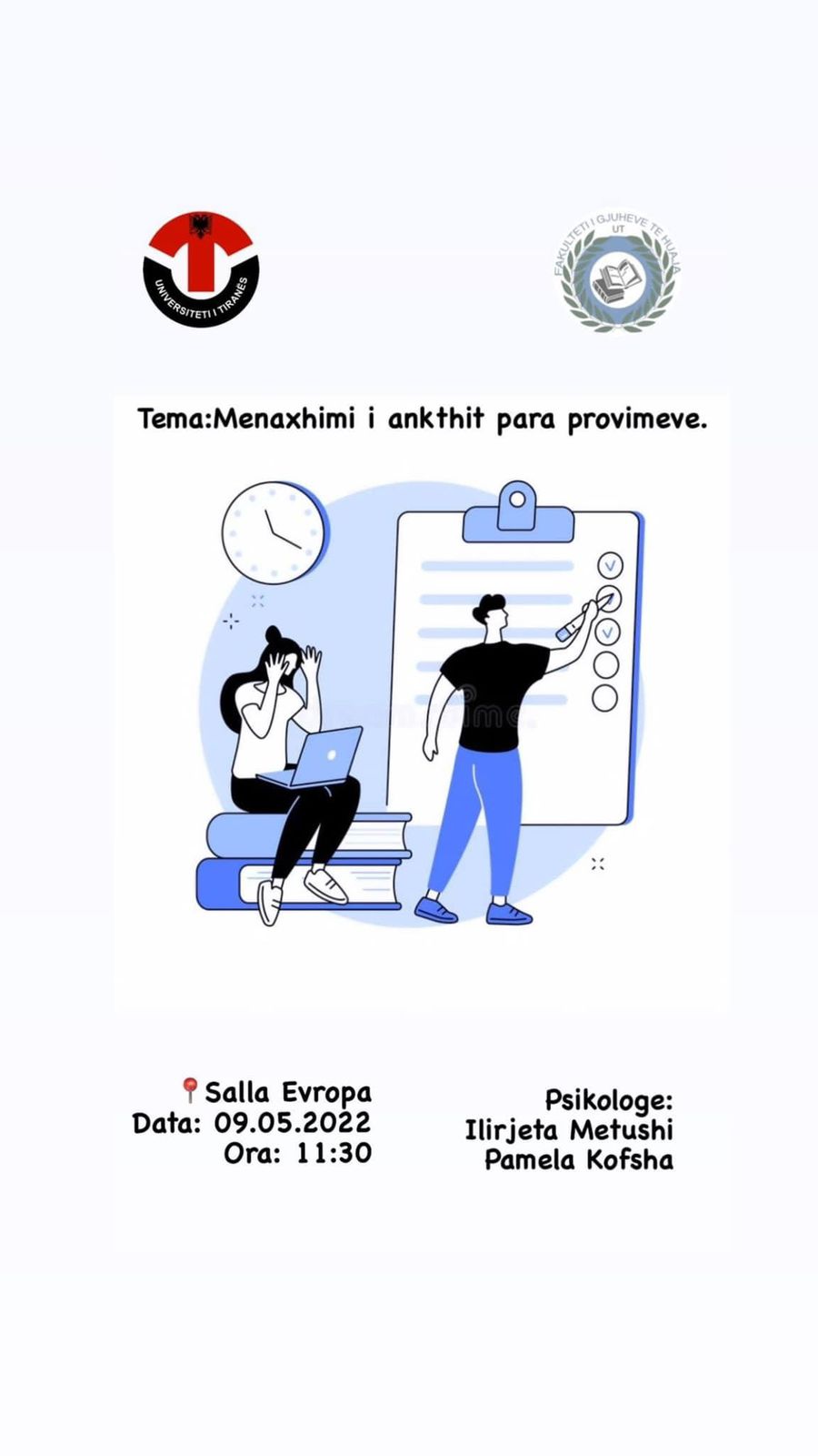 Në prag të sezonit të provimeve,  Psikologet e Fakultetit, Znj. Ilirjeta Metushi dhe Znj. Pamela Kofsha, informuan studentët me konceptin e ankthit. Gjithashtu studentët u njohën me disa teknika të menaxhimit te ankthit dhe me mënyra se si mund t’i praktikojnë ato në situata të caktuara.