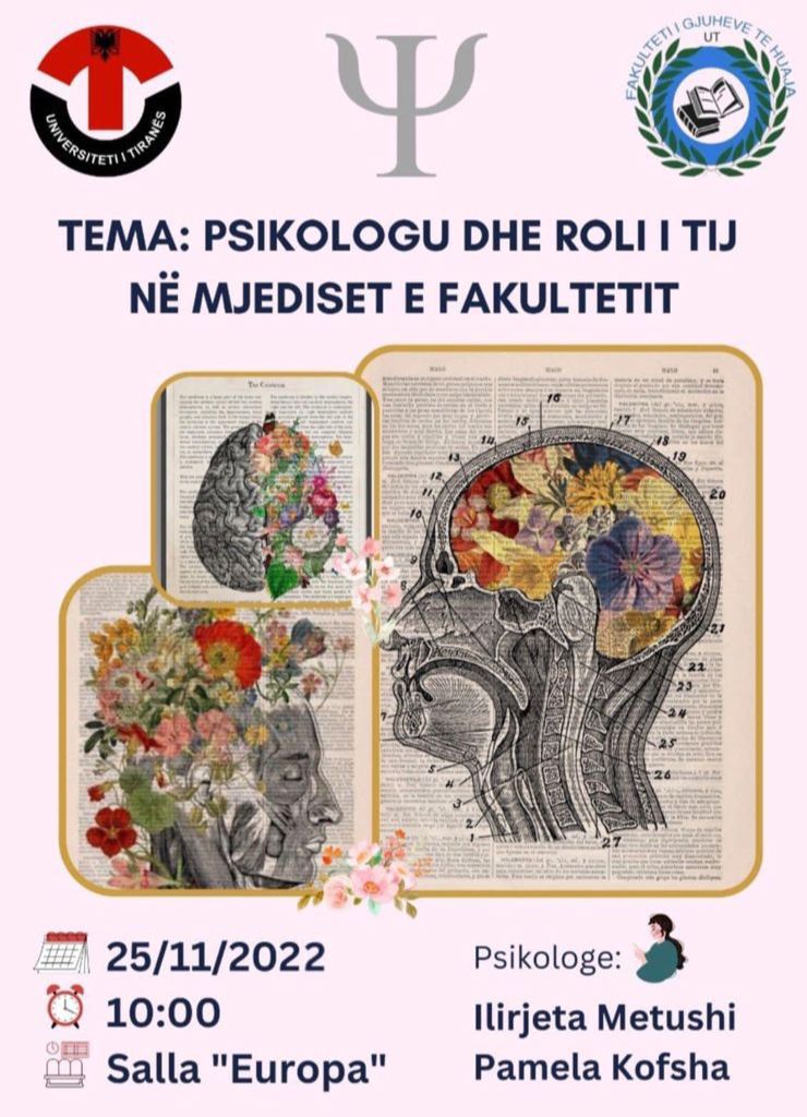 Fakulteti i Gjuhëve të Huaja organizoi sot leksionin e hapur me temë : “Roli psikologut në fakultet dhe rritja e vetëvlerësimit.” me psikologen e FGJH-së Znj. Ilirieta Metushi. Leksioni u organizua në formë bashkëbisedimi me studentët. Studentët bënë një sërë pyetjesh rreth tematikave të zhvilluara. Nga komentet e studentëve, takimi ishte informues, biseda e këndshme...