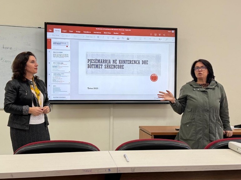 Gjatë takimit, studentët morën pjesë në diskutime dhe pyetje-përgjigje mbi përvojat dhe sfidat që lidhen me aktivitetin shkencor, duke përfituar këshilla praktike për përgatitjen e prezantimeve dhe artikujve akademikë. Ky aktivitet krijoi një hapësirë frymëzuese për shkëmbim ideash dhe motivoi pjesëmarrësit për të rritur përfshirjen e tyre në botën akademike, duke nxitur zhvillimin profesional dhe kërkimor të studentëve të ciklit Master dhe Doktoraturë.