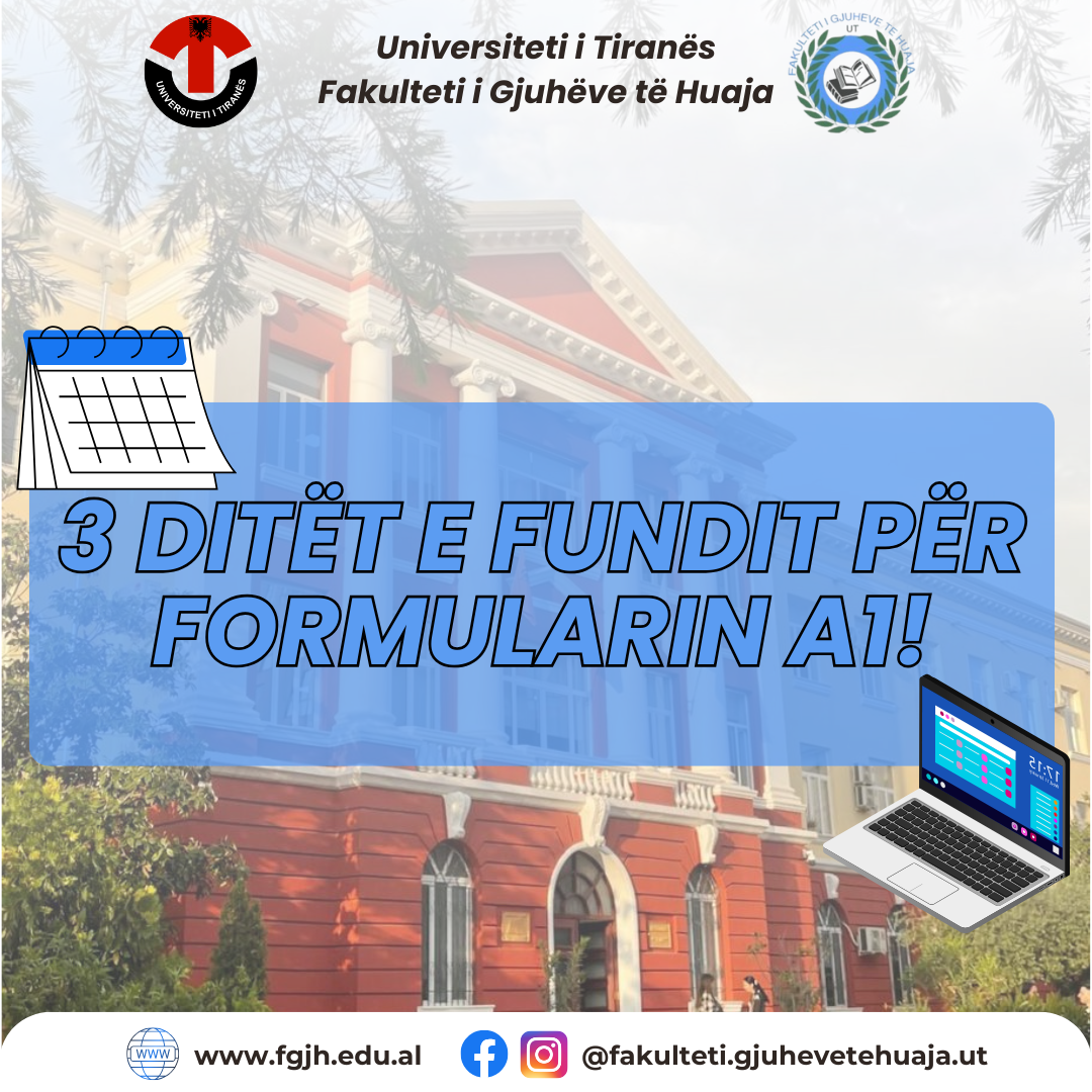 #Matura2026 ⏳ Po i afrohemi përfundimit të afatit të aplikimit për A1 FGJH-UT rikujton maturantët se afati për plotësimin e formularit A1 është i kufizuar. 🎓 Mos e lini aplikimin për momentin e fundit. Planifikoni me kujdes rrugën tuaj akademike.