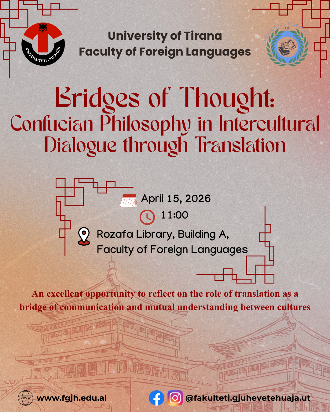 The Faculty of Foreign Languages, University of Tirana, invites you to an academic and cultural event dedicated to the dialogue between East and West through Confucian philosophy and translation.