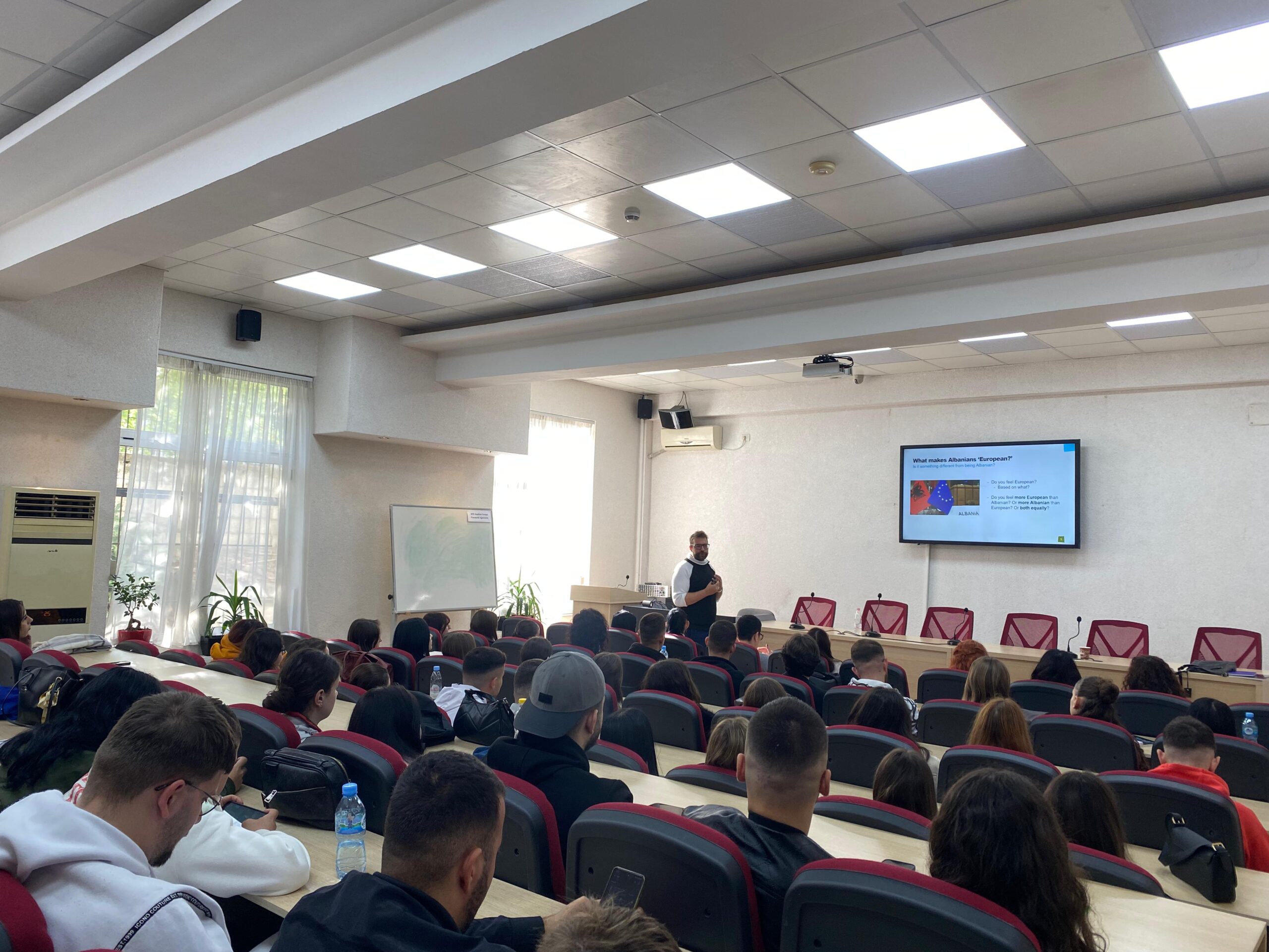 Studentët treguan interes dhe angazhim të veçantë, duke sjellë shembuj nga realiteti evropian dhe shqiptar dhe duke e bërë diskutimin edhe më të pasur.