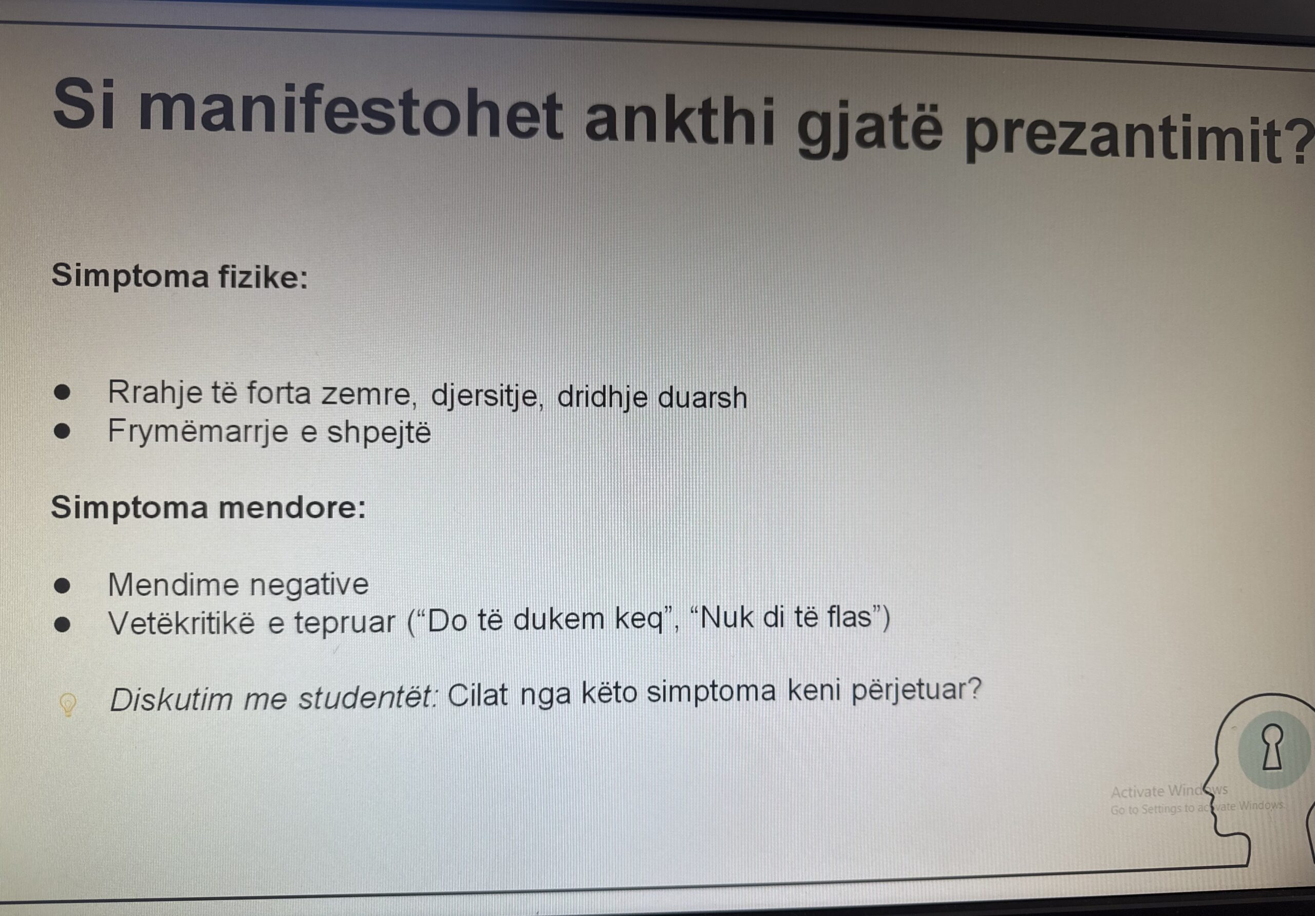 Leksioni gjithashtu përfshiu teknika të menaxhimit të ankthit dhe stresit duke u ofruar pjesëmarrësve mjete të dobishme për t’u përballur me situatat sfiduese në mjedisin akademik 🌿🧠.