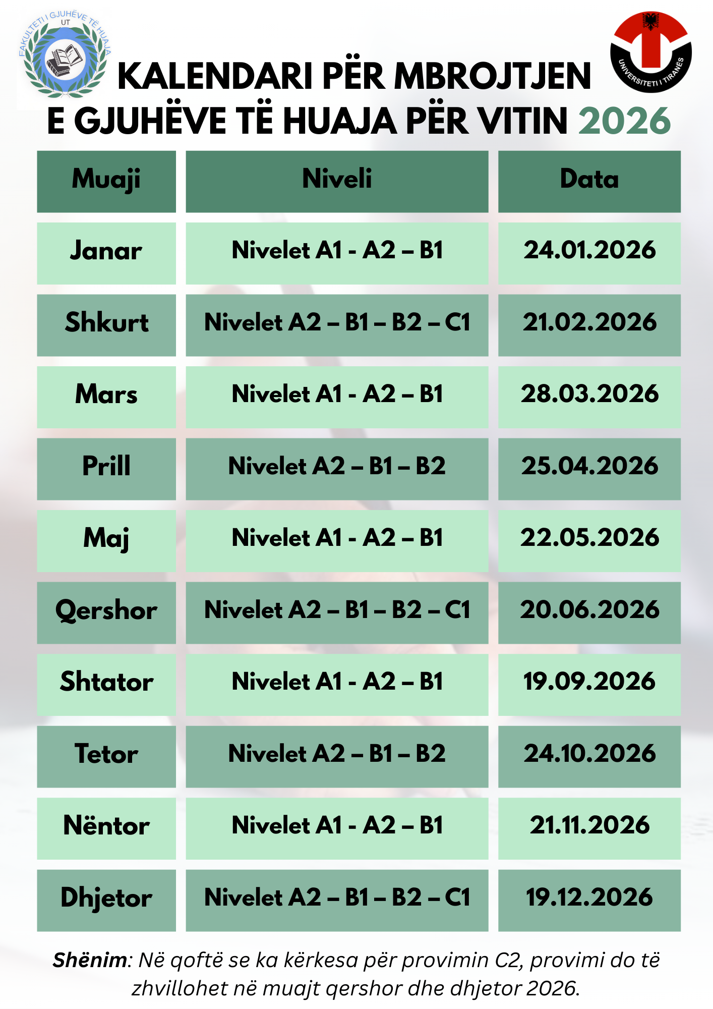 Regjistrimet fillojnë nga data 27 Janar deri më datë 17 Shkurt 2026.