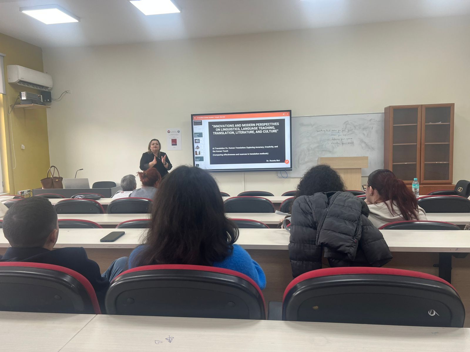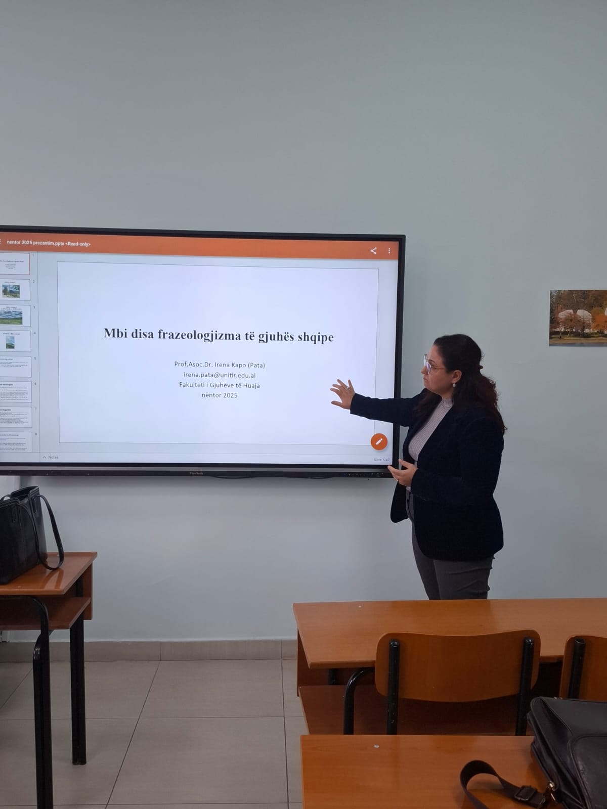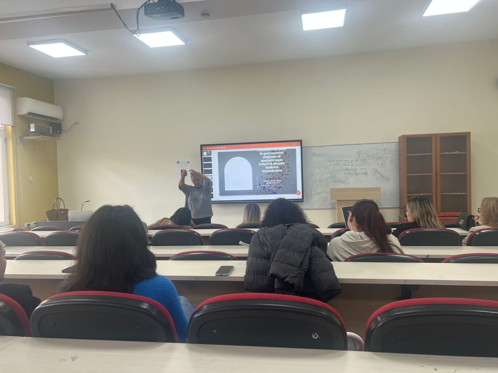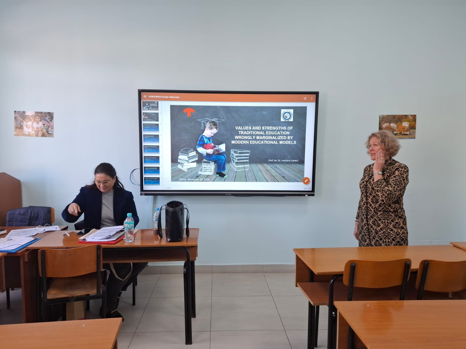 Prof. Asoc. Dr. Daniela Hasa në cilësinë e Përgjegjësit të Departamentit hapi konferencën dhe theksoi rëndësinë e organizimit të kësaj konference, rezultatet e të cilës lidhen drejtpërdrejt me cilësinë e mësimdhënies. Konferenca u përshëndet nga Prof. Dr. Esmeralda Kromidha, Dekane e Fakultetit të Gjuhëve të Huaja, e cila nënvizoi rëndësinë e përfshirjes së elementeve të teknologjisë, veçanërisht rolin që Inteligjenca Artificiale po luan në çdo fushë të jetës. Ajo theksoi që risitë në kërkimin shkencor duhet të jenë në fokus të aktiviteteve të tilla dhe të përfshihen në programet e studimit, me qëllim që FGJH-ja të jetë sa më pranë risive dhe prurjeve më të fundit të shkencave gjuhësore. Kjo konferencë u përshëndet edhe nga Tatjana Slijepcevic, drejtuese e programit English Connects për Europën, nga Këshilli Britanik e cila prezantoi dhe bashkëpunimin e ri që është ngritur midis Këshillit Britanik dhe Departamentit të Gjuhës Angleze për përfshirjen e studentëve të ciklit të dytë Master i Shkencave në Mësuesi e Gjuhës Angleze për Arsimin e Mesëm të Lartë në platformën ndërvepruese për zhvillimin profesional “Online Teacher Community”. Cristiana Osan, trajnere e certifikuar DELTA, pjesë e programeve të formimit të vazhduar të ofruara nga Këshilli Britanik, prezantoi platformën ku janë të përfshirë studentët e Departamentit të Gjuhës Angleze duke përgëzuar angazhimin e tyre maksimal.