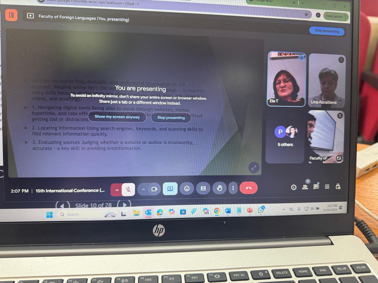 Gjatë konferencës u prezantuan dhe u diskutuan mbi 40 punime shkencore nga kërkues të rinj doktorantë të regjistruar pranë Fakultetit të Gjuhëve të Huaja por edhe pedagogë të ftuar nga Lituania, dhe Kosova të cilët sollën për diskutim çështje me interes në fushat gjuhësore, përkthimore, letrare, kulturore dhe reflektime mbi problemet e mësimdhënies së gjuhës angleze në shkollat shqiptare.