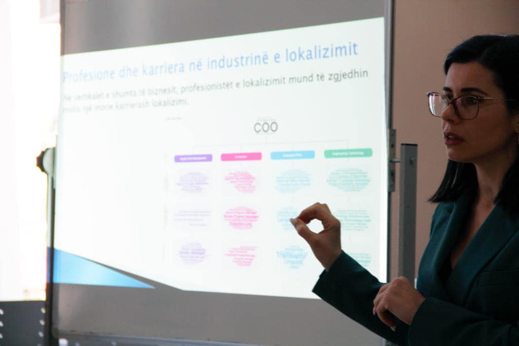 Sot në ambientet e Fakultetit të Gjuhëve të Huaja, Nertila Konda, përfaqësuese e kompanisë së përkthimit Alba Global mbajti një leksion të hapur mbi karrierat dhe mundësitë në industrinë e përkthim-lokalizimit. Studentët patën mundësinë të shohin më konkretisht si funksionon kjo industri globale dhe të shuanin kureshtjen për disa nga risitë më të fundit të saj. ![]()