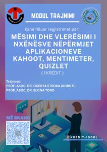 Vazhdojnë regjistrimet për module trajnimesh për punonjësit arsimorë të sistemit parauniversitar me 1, 2 dhe 3 kredite në datat 21, 22 dhe 23 tetor.