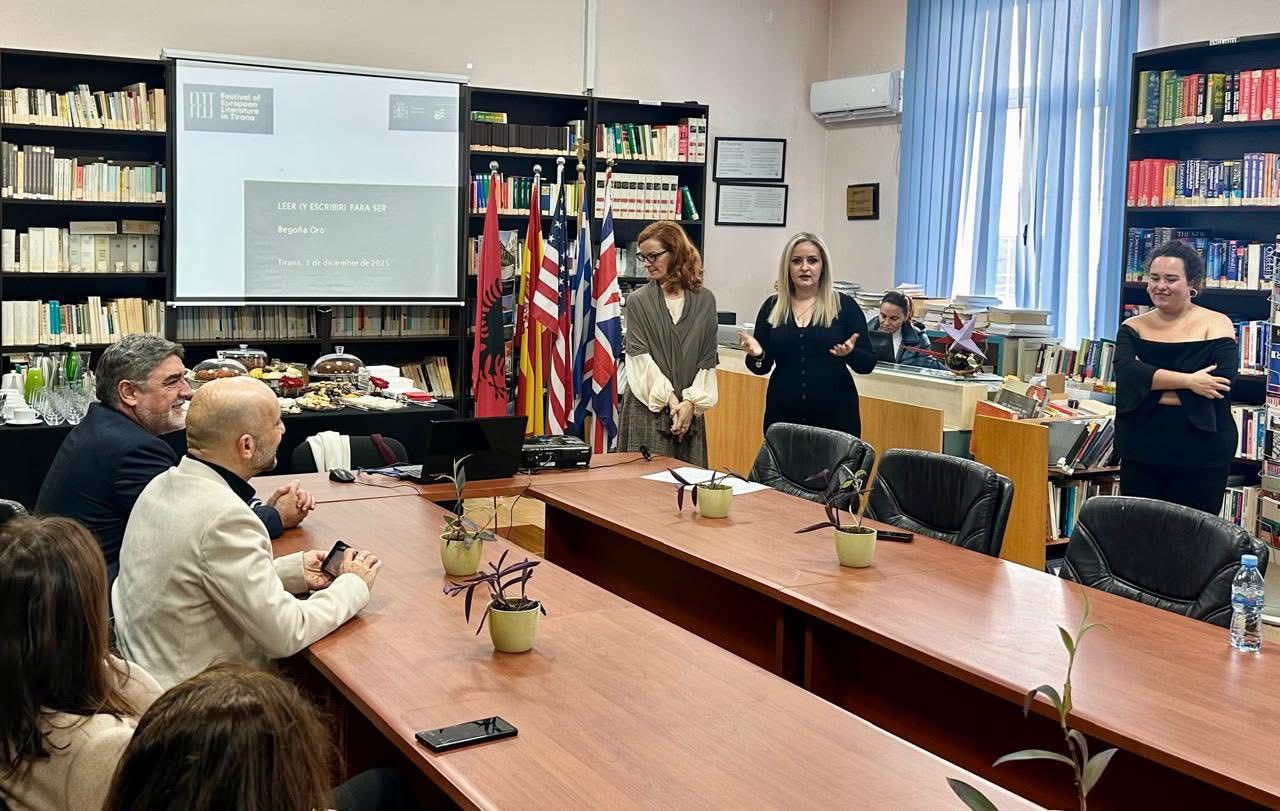 Me rastin e Festivalit të Letërsisë Evropiane, organizuam sot, në 04 Dhjetor 2025, në bibliotekën “Argjiro” një aktivitet që e ktheu hapësirën në një skenë dinamike dialogu mbi letërsinë bashkëkohore dhe krijimtarinë për të rinj. Prania e shkrimtares spanjolle Begoña Oro, e Këshilltarit Teknik të Këshillit të Arsimit Antonio Jesús Sanz dhe e Ambasadorit të Spanjës në Tiranë Gabriel Cremades Ventura i dha diskutimit një dimension të gjerë kulturor dhe profesional.