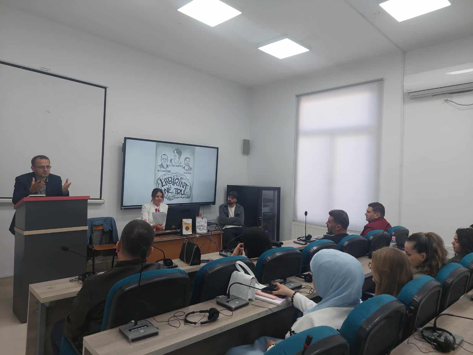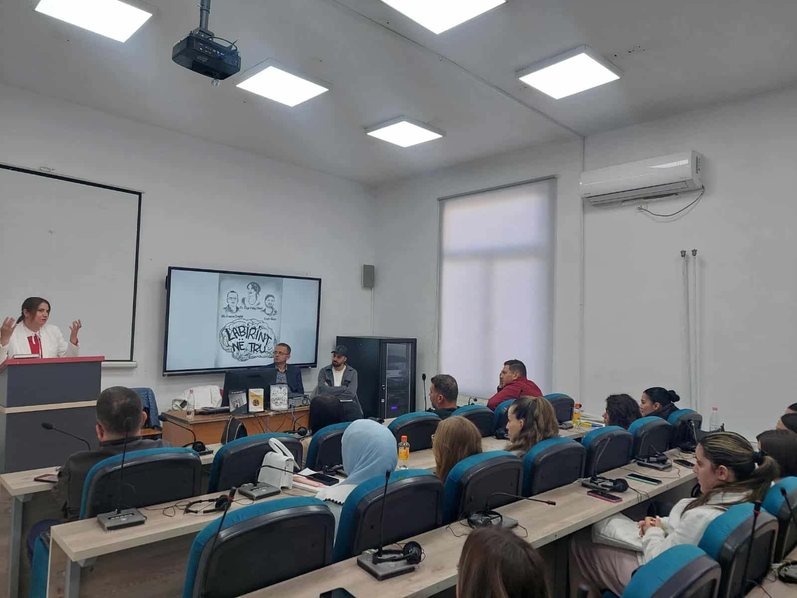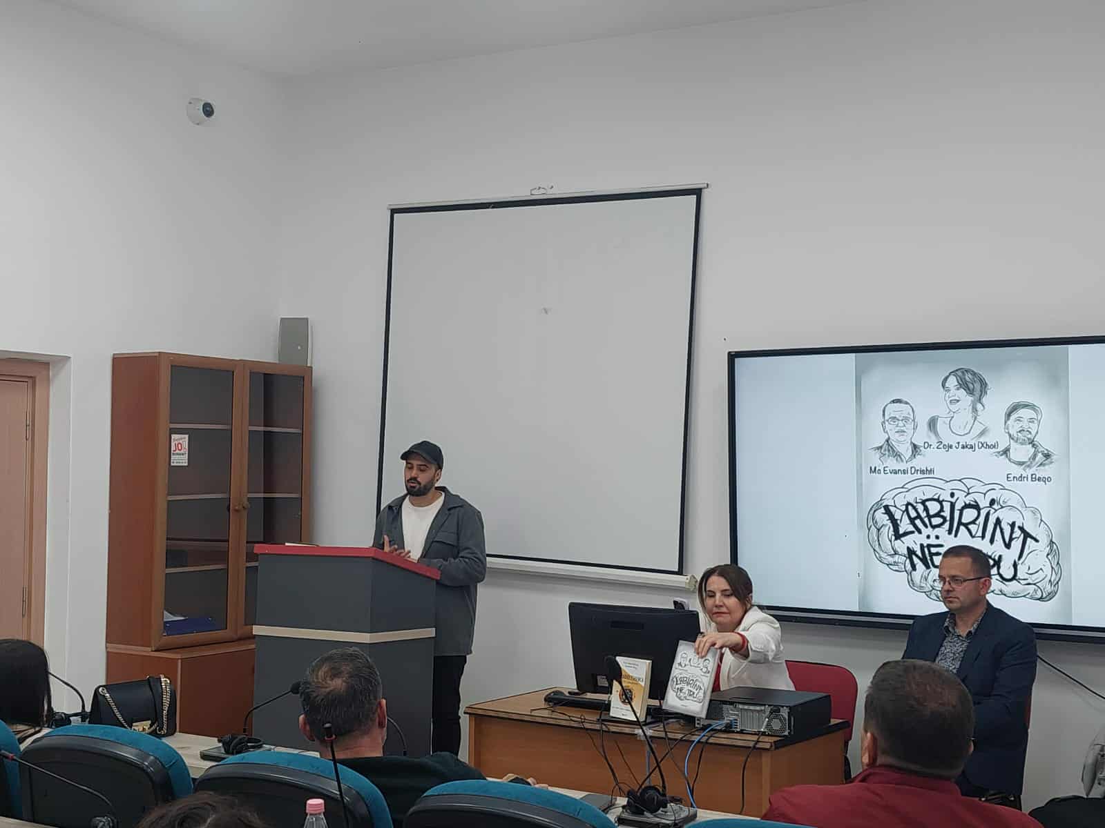 Më pas e mori fjalën Dr. Zoje Jakaj (Xhoi), e cila foli për eksperiencën e saj shumëvjeçare në mësimdhënie, punën me nxënësit, për përgjegjësitë e marra gjatë karrierës së saj në postin e drejtoreshës së burgut të grave, për angazhimet e saj në shoqërinë civile, për libra e shkruar deri më tani dhe në mënyrë të veçantë për librin e shkruar në bashkëpunim me Evans Drishtin dhe Endri Beqo “Labirint në tru”, i cili u prezantua para studentëve dhe pedagogëve të pranishëm. Dr. Zoje Jakaj tha se në një kohë të re sfidash për adoleshentët dhe të rinjtë “Mesazhi kryesor i këtij libri është një thirrje për t’u dëgjuar nga mësuesit, nga prindërit, nga të rinjtë, nga vëllezërit, nga motrat, nga e gjithë shoqëria.”