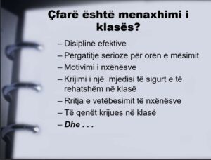 · Hartimi i një plani të mirëfilltë për menaxhimin e klasës;