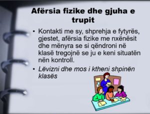 · Menaxhimi i sjelljeve shqetësuese dhe i situatave konfliktuale në klasë;