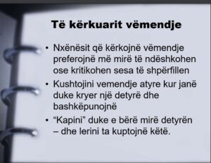 ✔️ Promovimi i mirëqenies emocionale dhe sociale të nxënësve dhe mësuesve etj.