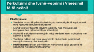 • aplikimin e këtyre mjeteve për vlerësim dhe vetëvlerësim të nxënësve.