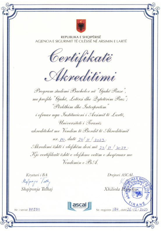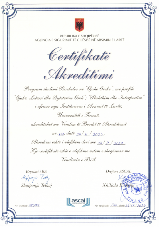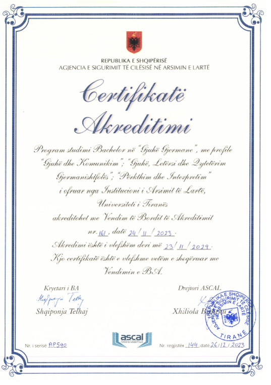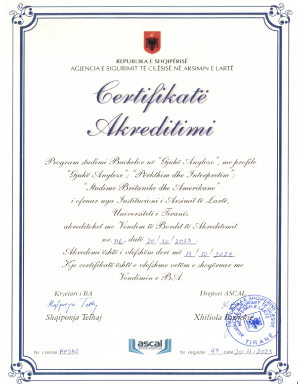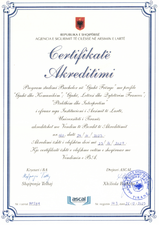 FGJH ka filluar procesin e akreditimit për programet Master në Mësuesi e Gjuhës së Huaj për arsimin e mesëm të lartë, Master i Shkencave në Komunikim Ndërkulturor Turistik Trigjuhësh, Doktoratë në Shkenca Humane.