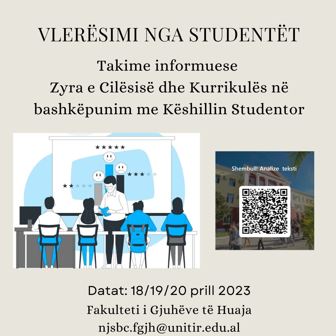 🏢Zyra e Cilësisë dhe Kurrikulës në FGJH në bashkëpunim me Këshillin Studentor do të organizojë takime informuese me studentët për sensibilizimin e plotësimit të pyetësorëve “Vlerësimi i lëndës dhe pedagogut nga studentët”.✔️