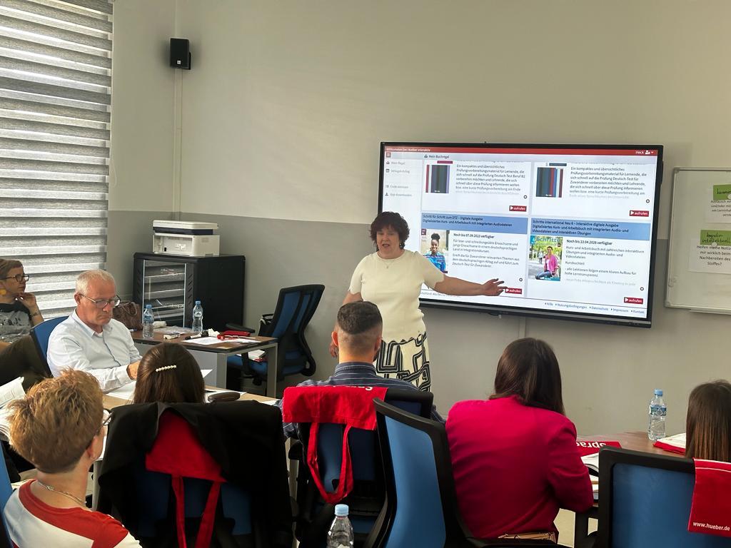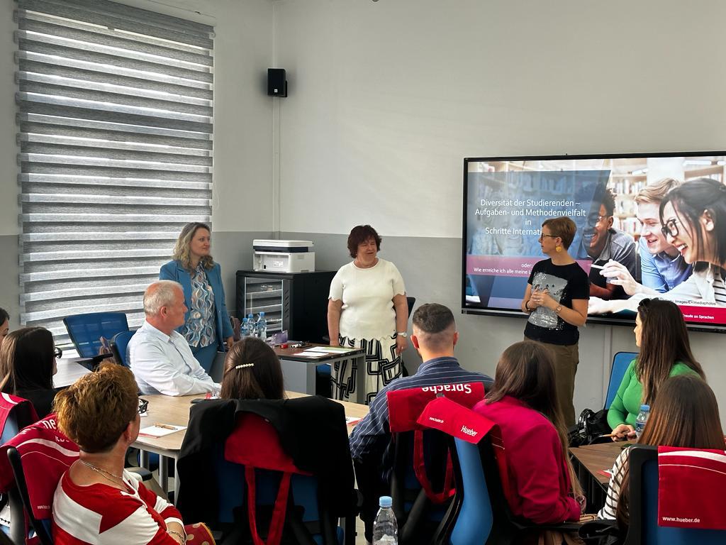 Me datë 05.05.2023, në sallën e trajnimeve të Fakultetit të Gjuhëve të Huaja, grupi kërkimor-mësimor “Didaktikë / Mësimdhënie” i Departamentit të Gjuhës Gjermane, pati kënaqësinë të organizojë në bashkëpunim me Educational Center dhe përfaqësues të Huber-Verlag, Workshopin me temë “Diversiteti mes studentëve – shumëllojshmëria e ushtrimeve dhe metodave tek Schritte International Neu”.